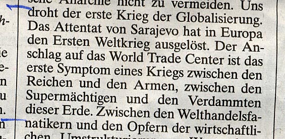 acknowledgment that this was not a "cowardly" attack on "civilization" or "liberty" or "humanity" or "the free world" but an attack on the world's