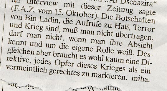 Immer derselbe Text als voice over (nicht Übersetzung des Zitats) Sinngemäße Wiedergabe: Gegen UNO, die er als kriminell bezeichnete, (Siehe zur Kriminalität auch Günter Grass: Siedlungs- und