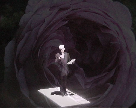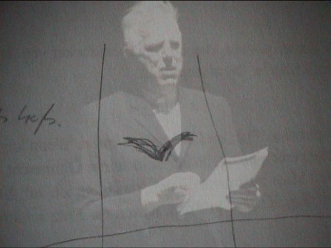 countdown Einar Schleef Über dem Bett (10) projiziert Fragmente zu dem letzten Projekt (Nietzsche Trilogie in Wien 2001). |