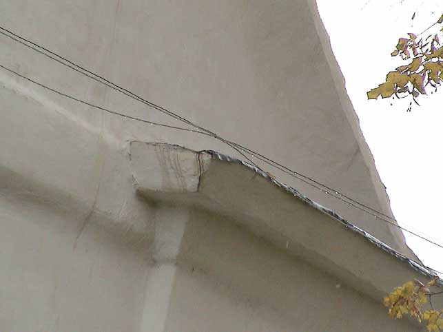 war das Blech, rechts über dem Giebel mit einer Kante nach aussen versehen,
