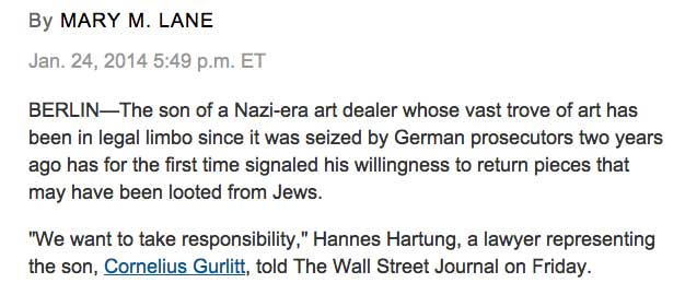 Der Mann ist unter Gewahrsam. In Freiheit erklärte er mehrfach seine Absicht, nichts von seinem Eigentum an den Bildern herzugeben. Nach dem Raub der Bilder durch die Organe des Staates nun die Selbst-Enteingnung mit direkter Vollzugs-Meldung per Telefon sofort in die USA und nach Israel. Alle Presse-Meldungen dazu in englischer Sprache. Deutschland existiert nicht mehr, nur als zentrale Konkursmasse Europas.