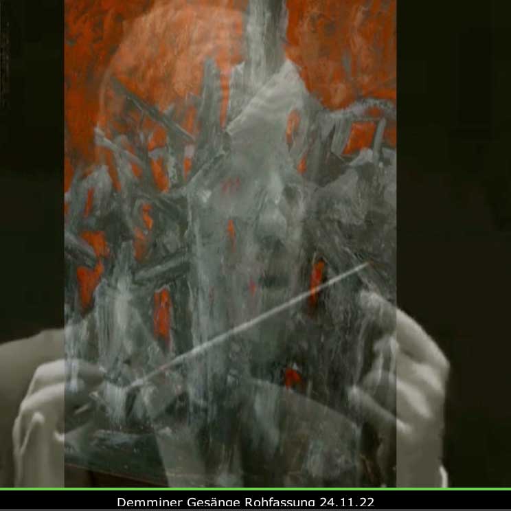Alles ging immer über die Ohren. Nicht Zeitungen, nicht Wochenschauen auf dem Land. nicht Erlebtes in Realität. Die Vorstellungen werden aktiv. Heute zu verbinden Bild und Ton. Vergangenes und was zu tun ist.Senn K. Schlösser so sicher erinnert im Malen vor dem Tode nochmal Demmin, wir heute im Film mit den Tönen eines Rquiems .... zu Demmin 2013.