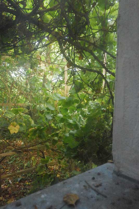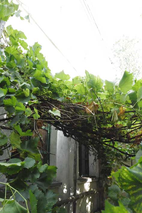 von weiter hergeleiteten Weinstöcke, als sie den Beton am Haus miedern?