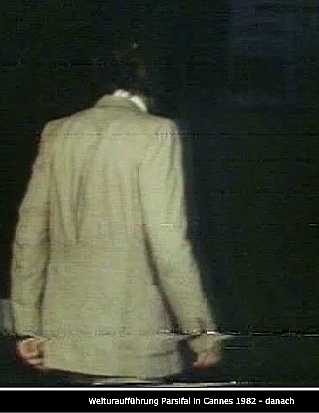 Was war passiert.Der Film als Coproduktion mit den Pranzosen /Gaumond ordentlich im Programm ausser Konkurrenz aber wegen der aussergewöhnlichen Länge Richard Wagner 4 Stunden in der Nebenstrasse in ein Pornokino plaziert mit entsprechenden Bilddekos im Vorraum, und das ging nun nicht. Als Weltpremiere. Das Festivalpalais war austerminiert. Also Absage oder danach ab Mitternacht, wenn die anderen nachhause gingen. Ludwigzeiten nachts. Nach den Putzfrauen. Keine Kritiker, Presse seit früh auf den Beinen, Publikum müde vorm Strand, egal. Leerer Saal, ohne Ankündigungen, verrückt. Der Verleih in Frankreich (Copartner)dann ist der Film tot, sprach kein Wort mehr mit mir.