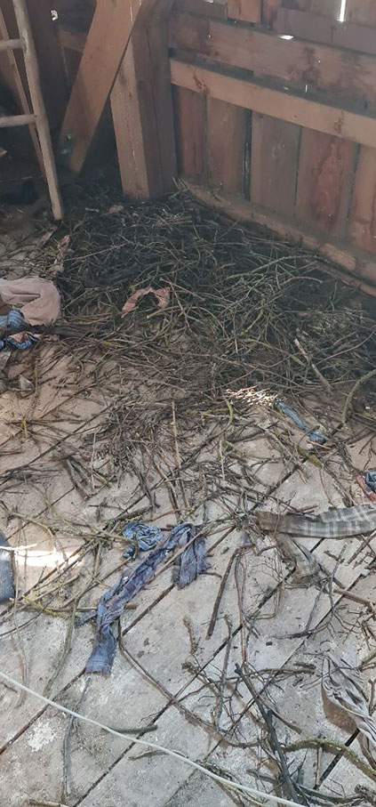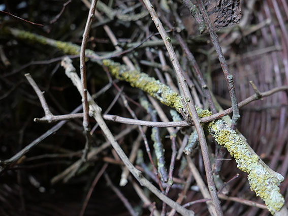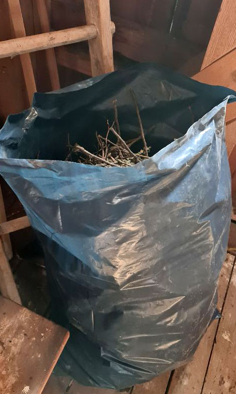 Kleine Zweige für das Nest, die nicht durch die Wände passen, machen unser bestes Feuer