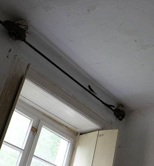 oben auf dem Boden ist alles offen und schönste Balken mit offenen Nestern warten