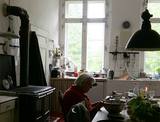 Im Haus erster hinten zum Park. Dort wo die Prinzessinnen stehen.
