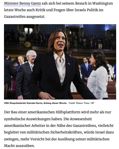 Unterdessen ist das erste US-Schiff unterwegs, das Ausrüstung für den Bau des geplanten Hafens an Bord hat, über den Hilfslieferungen direkt nach Gaza gelangen sollen.