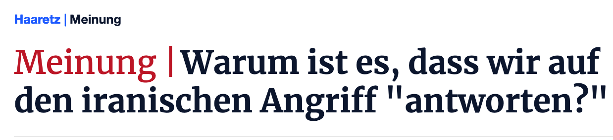 Wenn Israel eine maßvolle Reaktion wählt, wird das Risiko geringer sein, aber der Nutzen wird Null sein. Abgesehen von dem "Wir müssen reagieren"-Unsinn wird daraus nichts mehr werden. Der Iran wird sich nicht abschrecken lassen, so wie sich die Hamas und die Hisbollah nicht abschrecken. Der Iran könnte auch auf einen maßvollen Angriff reagieren, und dann müssten wir auf jeden Fall reagieren. Was dann?