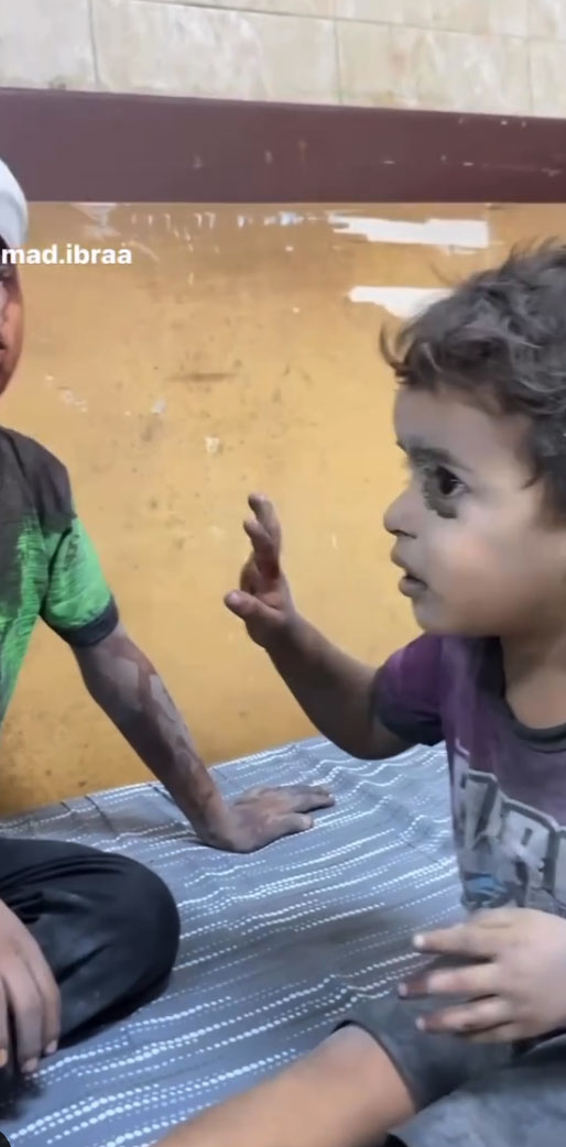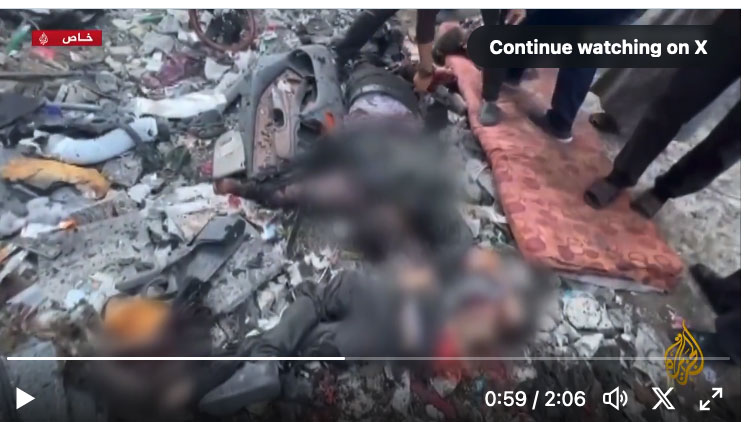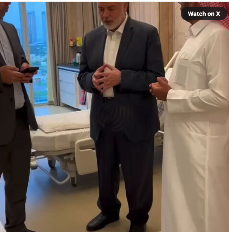Ein Video, das von Al Jazeera ausgestrahlt wurde, scheint zu zeigen, wie Haniyeh die Nachricht vom Tod seiner Söhne und Enkelkinder erhält: Hazem und seine Tochter Amal; Amir und seine Söhne Khalid und Rizan; und Mohammed. Nachdem er von ihrem Tod erfahren hat, während er verwundete Bewohner des Krieges in einem Krankenhaus in Doha, Katar, besuchte, kann man hören, wie er Gott segnet und seinem Gefolge sagt: "Lasst uns weiterarbeiten."