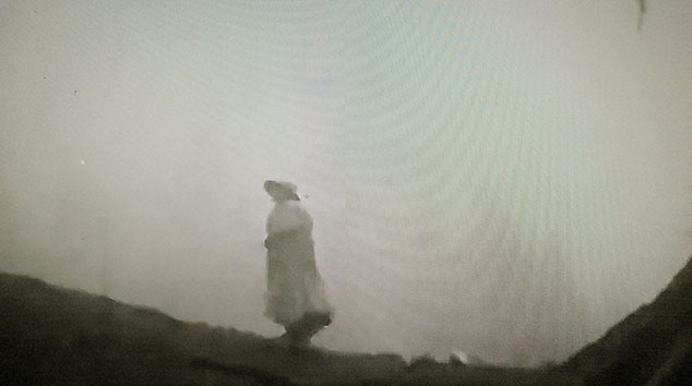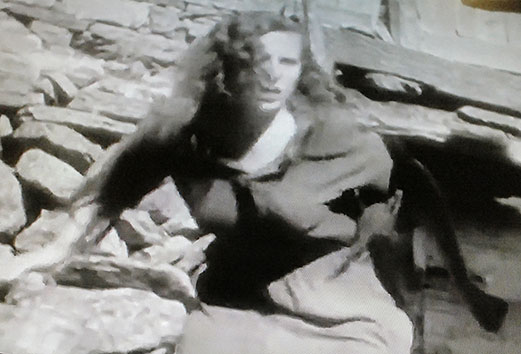 die Männer verfolgen sie und wollen ihr Geheimins wissen, machen verrückt, wenn sie da oben rumsteigt und es von innen glüht, dass vor allem der Maler auf ihre Spur jommt.