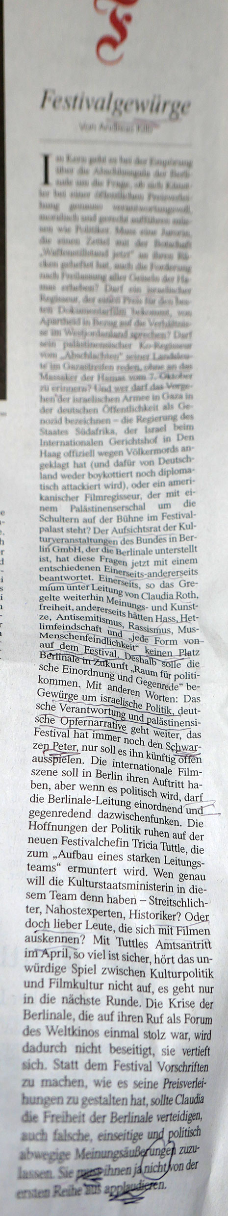 In seiner Dankesrede bezog sich Glazer auf den Krieg im Gazastreifen und sagte, dass "Jüdisch und Holocaust" durch die Besatzung "entführt" worden seien. Die Fundamente zitterten. Wie kann ein Jude solche Dinge sagen, wenn wir in Israel immer noch unsere Toten nach dem Massaker vom 7. Oktober zählen; wenn die Hamas immer noch israelische Geiseln im Gazastreifen hält; wenn israelische Soldaten ihr Leben bei der Verteidigung des Heimatlandes opfern? Aber die Wahrheit, auch wenn einige Israelis es unbequem finden, ist, dass Glazer Recht hatte.