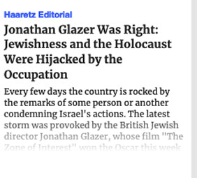 Alle paar Tage wird das Land von den Bemerkungen einer oder anderen Person erschüttert, die Israels Handlungen verurteilt. Der jüngste Sturm löste der britische jüdische Regisseur Jonathan Glazer aus, dessen Film "The Zone of Interest" diese Woche den Oscar für den besten internationalen Film gewann.