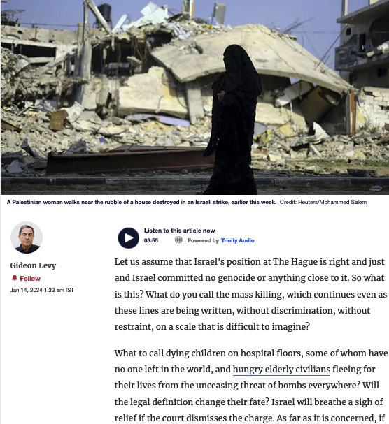 Let us assume that Israel's position at The Hague is right and just and Israel committed no genocide or anything close to it. So what is this? What do you call the mass killing, which continues even as these lines are being written, without discrimination, without restraint, on a scale that is difficult to imagine?