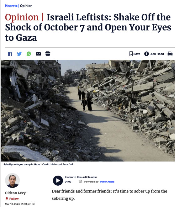 Es war grundlos, aber jetzt, fast ein halbes Jahr nach der Eröffnung Ihrer "Ayes", ist es Zeit, zur Realität zurückzukehren. Es ist an der Zeit, das ganze Bild zu sehen, das Gewissen und den moralischen Kompass zu reaktivieren, die am 7. Oktober abgeschaltet und gelagert wurden, und zu sehen, was seitdem mit uns und, ja, den Palästinensern passiert ist.