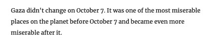 Gaza didn't change on October 7. It was one of the most miserable places on the planet before October 7 and became even more miserable after it.