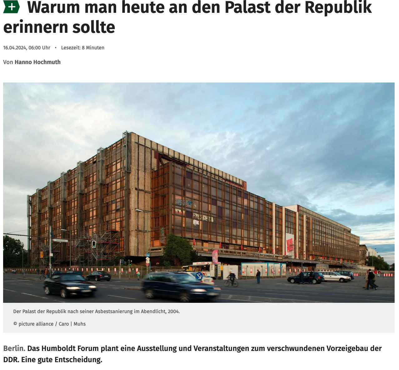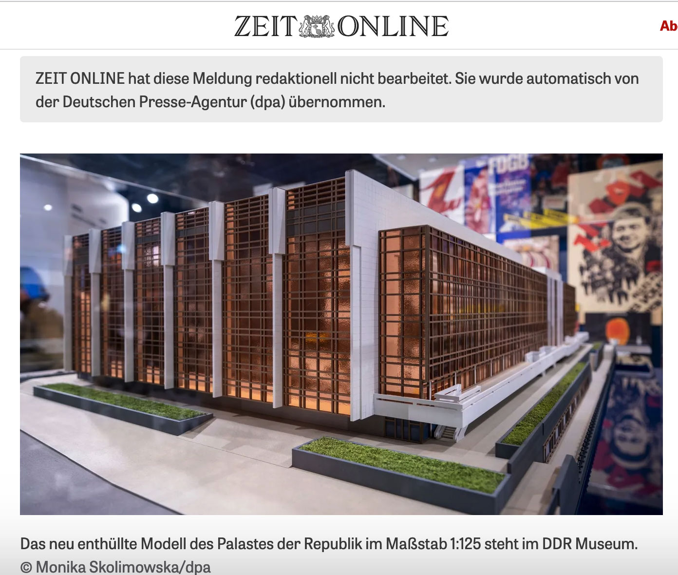 Der Palast der Republik aus DDR-Zeiten feiert ein weiteres Mal seine Auferstehung - zumindest modellhaft. An der TU Freiberger Bergakademie wurde jetzt ein Modell des Bauwerks restauriert, das die Konstruktionstechnik detailgetreu abbildet. Wie die Technische Universität in der sächsischen Stadt am Freitag mitteilte, war es eher zufällig gefunden worden. Für ein Gemeinschaftsprojekt der Bergakademie und der TU Braunschweig zur Geschichte des Volkseigenen Betriebes (VEB) MLK, dem größten Kombinat der DDR im Bereich Stahlhochbau, fand man das Modell ohne Bezeichnung zwischen anderen. Die Metallkonstruktion befand sich allerdings in einem Zustand, der eine umfassende Restaurierung erforderte, hieß es. Sie wurde von Restauratorin Silvia Oertel vorgenommen und vom Humboldt Forum Berlin finanziert. Demnächst ist das Modell erstmals öffentlich zu sehen - an jenem Ort, an dem sich einst das Original befand, im heutigen Berliner Humboldt Forum. Dort findet vom 17. Mai 2024 bis 16. Februar 2025 die Sonderausstellung «Hin und weg - Der Palast der Republik ist Gegenwart» statt. Nach Angaben des Forums soll die Geschichte des Palastes auf 1300 Quadratmetern erlebbar werden. Dabei werden unter anderem Zeichnungen, Fotografien und Plakate gezeigt.