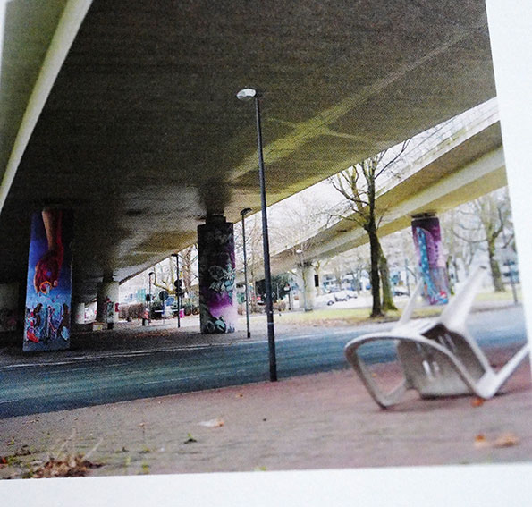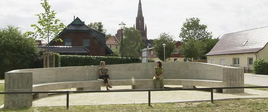 In N. die Enstehung eines Ortes für Stühle wieder mit Tisch auf dem ehem. Graben, nun verrohrt. Als Gedenkort.