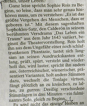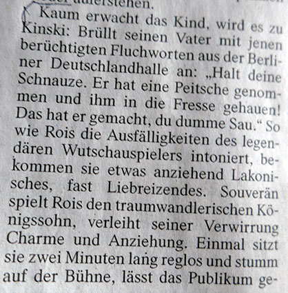 Selten liesst man etwas zum aktuellen Theater, wo die Wunsch sofort hinzumüssen sich auslöst. Zuletzt sahen wir Sophie Rois in den Vorstellungen von DIE NACHT dort Worte und Bewegungen koimmentierend und folgend, dass Neugier erwachte, wie wohl das ankam.