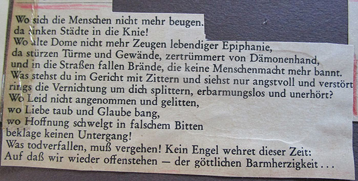 Das einzige Gedicht was von Rüdiger Syberberg übrig geblieben hier, vom Vater, seinen Bruder eingeklebt in des N. Album vor 45 Des Kindes. Nach 45 entstanden. Er überlebte damals in München. in einer Barake am Stadtrand(Pasing) als ich ihn 1953 besuchte, bevor ich in den Westen ging. Nach München. Langer SWeg . Da war er dann in Berlin.