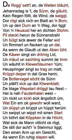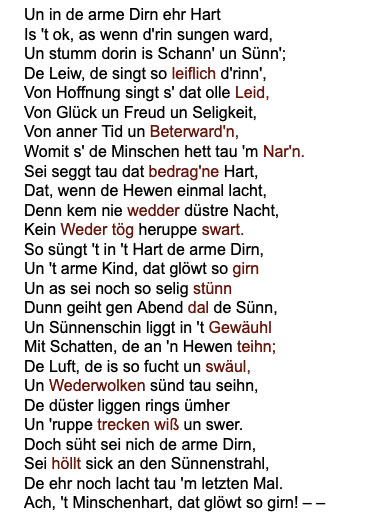 Worüm dat in sin Hart so ritt.