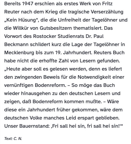 Un dat möt ick nu noch entgelln.«