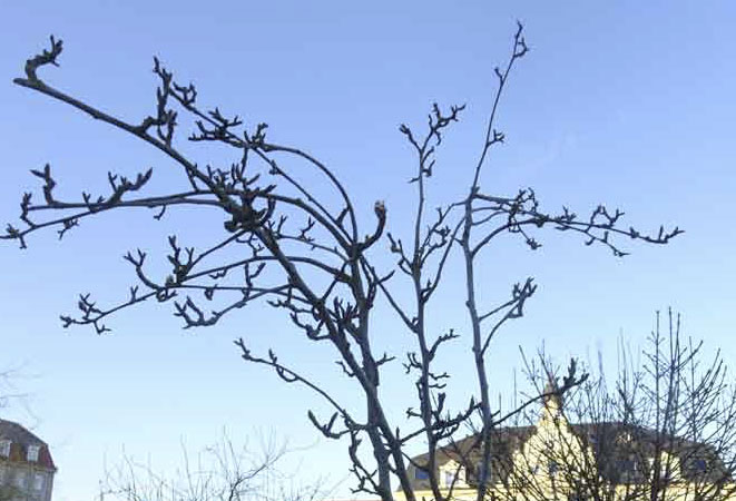 immer im Vordergrund nah an die Astkerne ran und im Hintergrund nach ruhiger Fläche suchend, alles drumherum auszulassen vor einer ruhigen Fläche, was sonst unruhig unbelaubt verwirrt.
