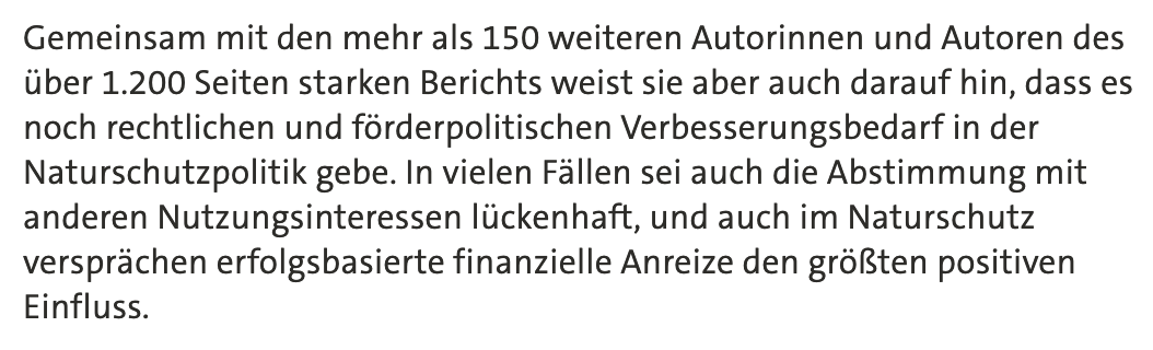 Ein Drittel aller Arten um uns gefährdet, vor dem Aussterben, der Grund Pestizide, Bodenversieglung. ...Dagegen Begrünung der Städte,