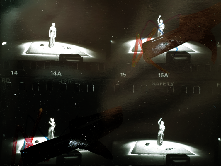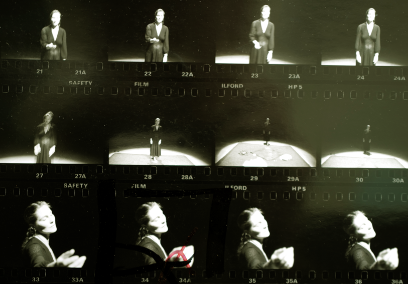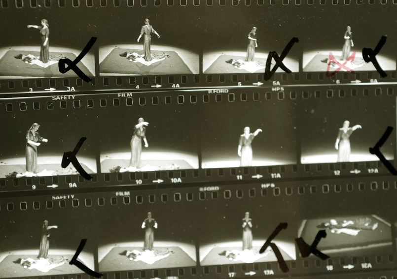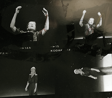 und hier dokumentiert in flüchtigen Bewegungen mit Bildern nebeneinander wie gezeichnete Figuren im besonderen Licht eines Spots.