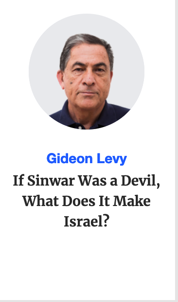 Sinwar verdient alle Beinamen, die an seinem Namen angebracht sind, aber es ist nicht Israel, das das Recht dazu hat. Ein Staat, der so tief in das Blut von Gaza und seinen Ruinen versunken ist, hat keine moralische Erlaubnis, seinen grausamen und bitteren Feind als den Teufel zu definieren, bevor er seine eigenen Taten untersucht. Wie kann Israel sich über Sinwars Grausamkeit beschweren, ohne mit der Wimper zu zu zuzuwenden? Ohne zu stammeln. Ohne sich unwohl oder peinlich zu fühlen.