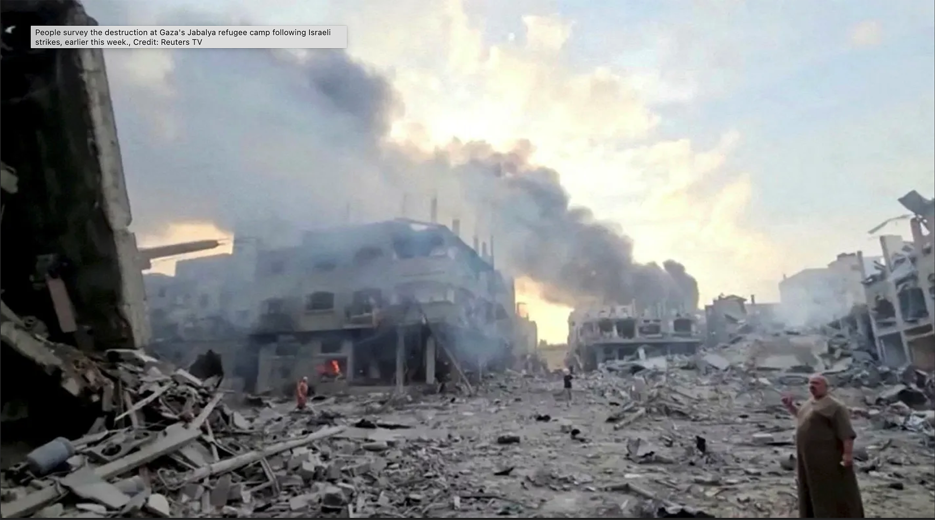 Ist es die 12 Tage, in denen keine Hilfe nach Gaza gebracht wurde? Vielleicht ist es die Vertreibung von weiteren 50.000 Menschen aus Jabalya letzte Woche oder die Tötung von 379 weiteren Palästinensern in dieser Woche? Oder die 3 Millionen Menschen, die aus ihren Häusern in Gaza und im Libanon vertrieben wurden, sich in Angst und ohne Besitz hin und her bewegen? Israel sieht nichts davon. Die Welt hört nicht auf, sie zu sehen.