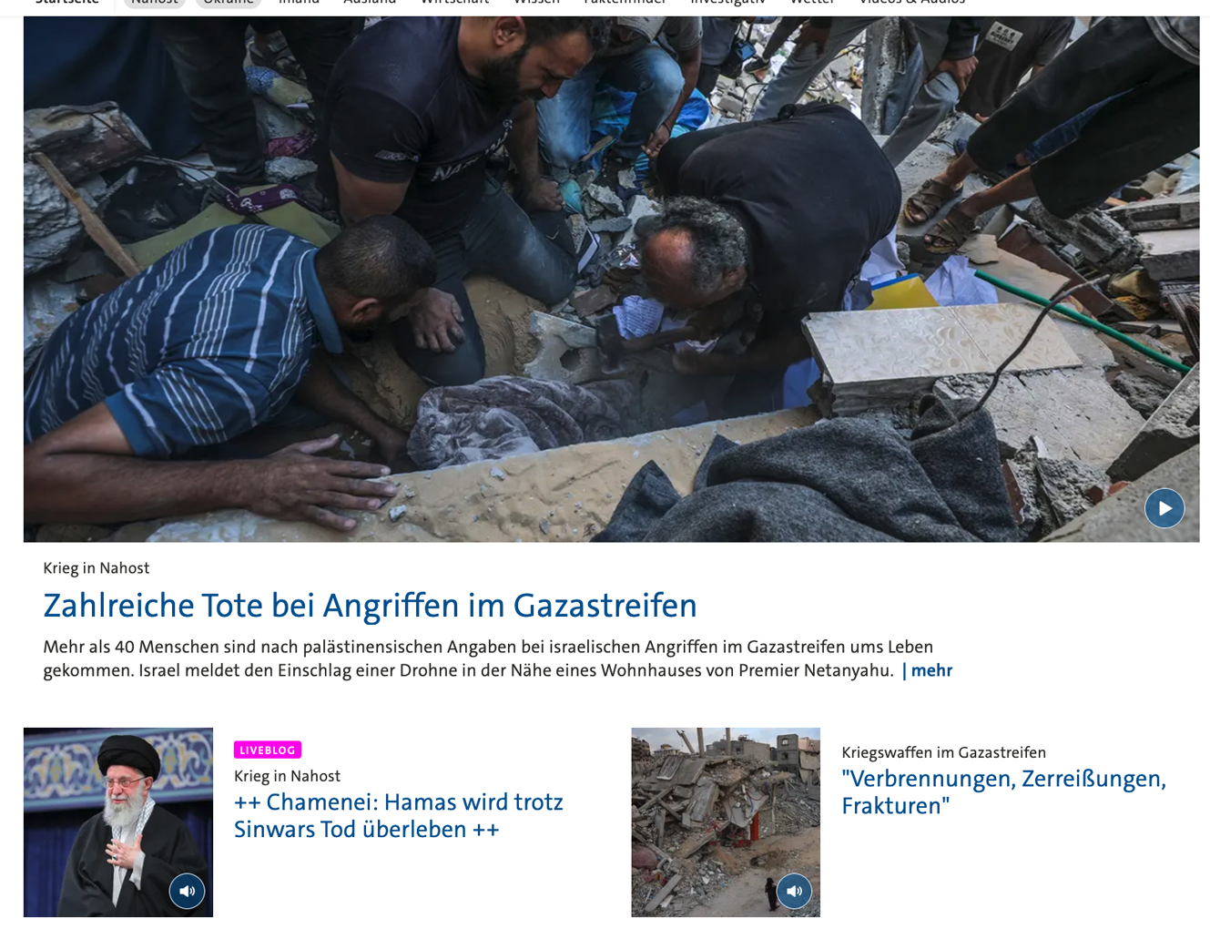 Die Tatsache, dass Israel das Massenblutvergießen und die Zerstörung in Gaza nicht meldet, macht diese nicht weniger grausam. Im Gegenteil, es macht diese Taten rauer. Wenn Israel zumindest seine Taten kennt, die sie direkt gegenüberstehen, während sie ihr Recht beanspruchen, sich selbst zu verteidigen, ein Recht, das es erlaubt, etwas zu tun, was es will, könnte man es vielleicht verstehen, sicherlich mehr als die Vorstellung, dass, wenn wir nicht der Realität gegenüberstehen, es nicht existiert; dass, wenn wir nicht unsere Grausamkeit zeigen können, wenn wir nicht unsere Grausamkeit zeigen können. In unseren Augen ist Sinwar der Teufel, und wir sind Engel des Friedens und der Barmherzigkeit.
