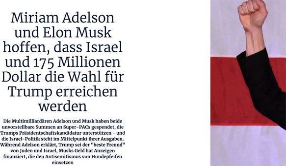 Würden gerne hier zeigen, was sie schrieben dem gefallenen Kommandeur -Helden Israels.Und zeigen die Bilder der Spender für Trumps Wahl jeden Tag eine Million .Finden es nicht mehr so schnell jetzt.