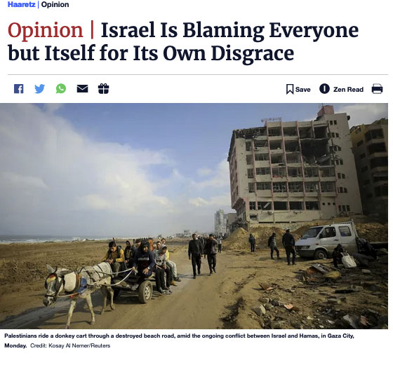 It's hard to believe that a country so anxious over its honor acts like it doesn't care about its international standing. The war in the Gaza Strip has brought Israel's status to an unprecedented low, but Israel has closed its eyes and mind yet again in a childish way, hoping that if it ignores the reality it can ignore the disgrace. It does nothing to improve its standing and dignity and regain a little pride.