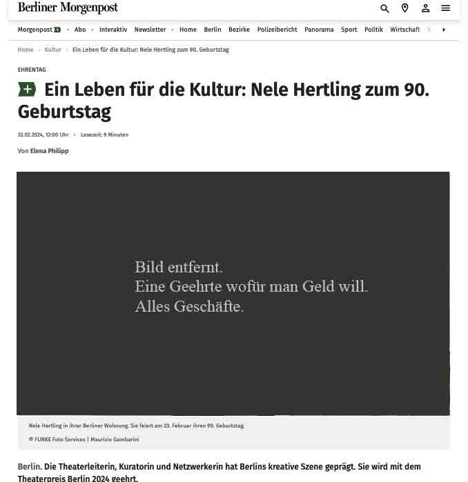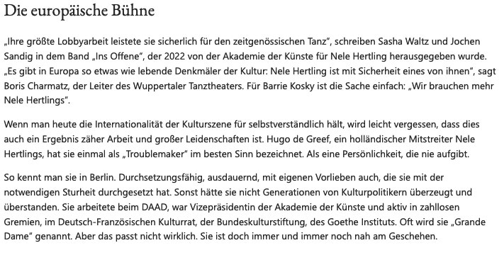 Ohne Nele Hertling gäbe es die Film-Monologe als Abgesang des Theaters von Brecht bis Kortner und Oskar Werner nicht.
