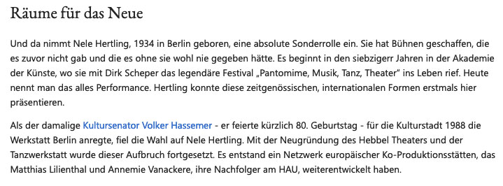 Es war die Zeit als Nossendorf noch grau im Schlaf lag, nach Paris 2003 als die ersten Fenster wieder geöffnet wurden und die Tür vorne noch verschlossen war, als Nele Hertling aus Berlin im Hebbel Theater angekommen half .
