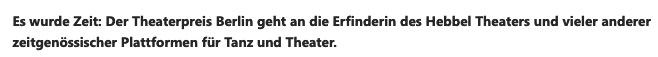 ohne sie und ihr Team gäbe es nicht die Monologe der Edith Clever nach der NACHT im Paris 1983 noch ohne Deutschland nun nach Berlin geholt