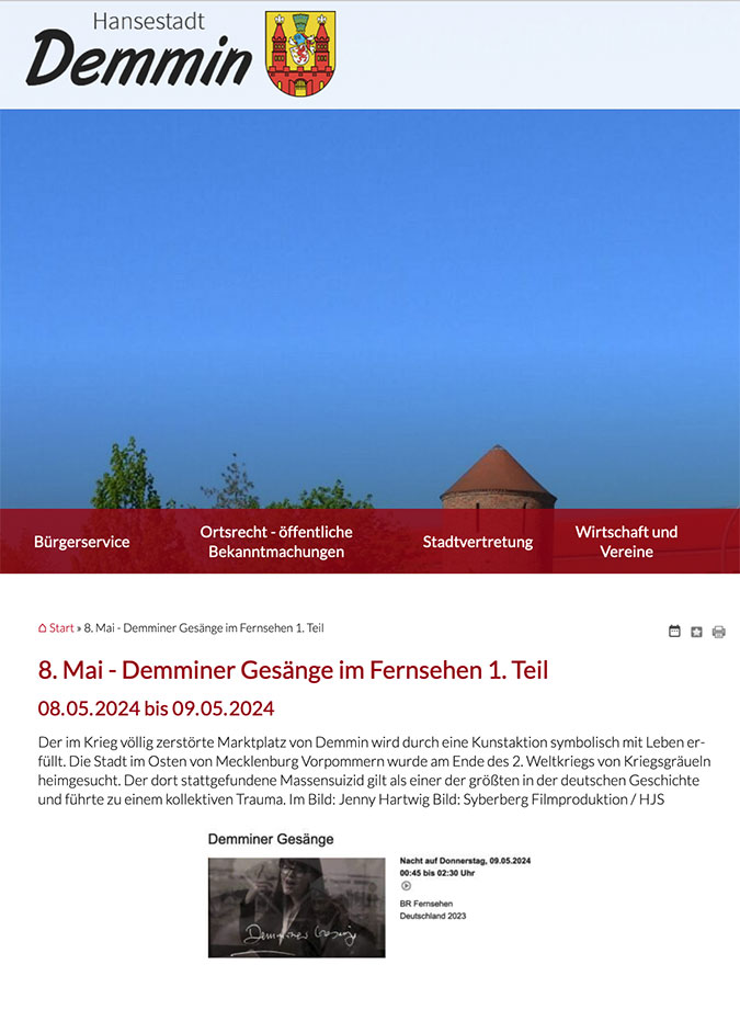 Es wird also der 1.Teil dieser Gesänge aus Demmin im FS/ ARD gesendet.