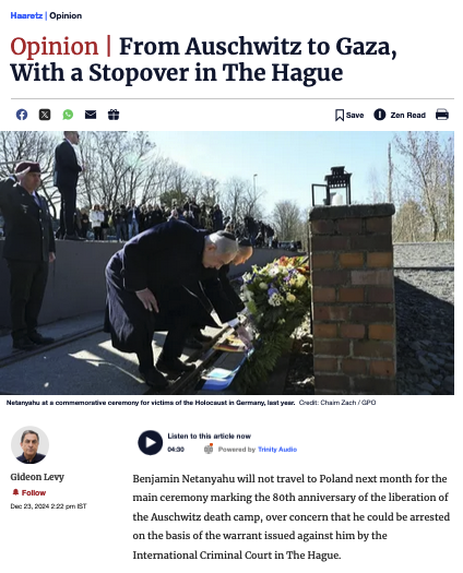 Es ist vakant, weil sein Staat zum Paria geworden ist und weil er vom angesehensten Gericht gesucht wird, das Kriegsverbrecher vor Gericht stellt. Es wirft einen Moment den Kopf vom Hanni Bleiweiss-Skandal und der Feldstein-Affäre auf: Netanjahu wird nicht in Auschwitz sein, weil er wegen Kriegsverbrechen gesucht wird.