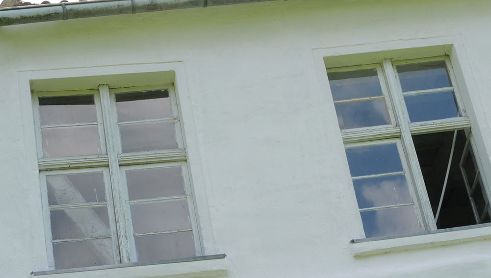 An den Tag als die Schwalbe ins offene Fenster des Bodens flog