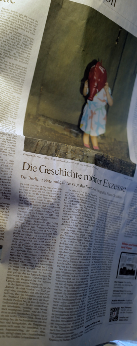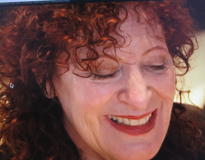 Der israelische Premierminister, der sich gerne in Stahlhelm zeigt und Body-cam plus Panzerveste nun zwischen dragqueens und sich umarmender nackter Männer der Schwulen, Lesben, oder Transenszene von einer Nan Goldin ausgeliefert . Mitten im Berlin 80 Jahre da nach.