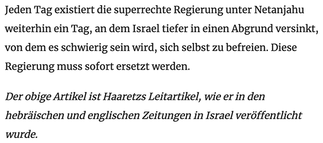 Von allen möglichen Kandidaten, die Netanjahu ersetzen – Yoav Gallant, Benny Gantz, Gadi Eisenkot, Naftali Bennett, Avigdor Lieberman, Gideon Sa'ar, Yossi Cohen und Yair Golan – gibt es keinen einzigen, der bereit ist, alle palästinensischen Gefangenen freizulassen und sich aus dem gesamten Gazastreifen zurückzuziehen. Mit anderen Worten, es gibt niemanden, der wirklich dafür ist, den Krieg zu beenden und die Geiseln zu befreien. Es gibt auch niemanden, der jemals an die Grenzen von vor 1967 zurückziehen will.