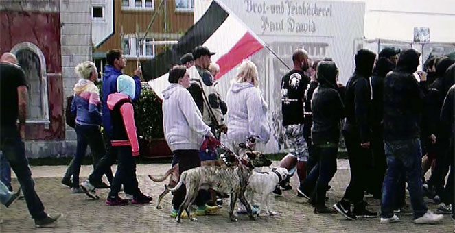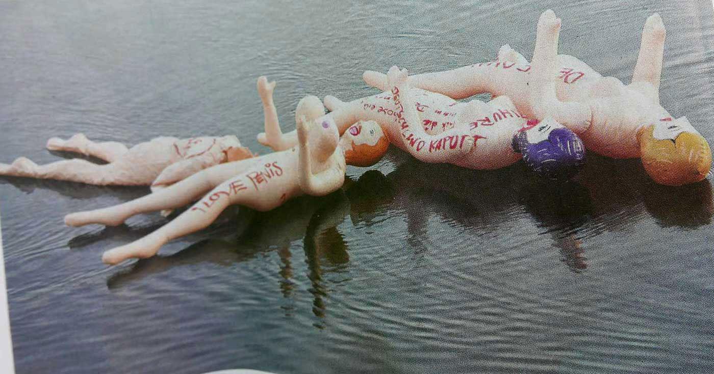 So war dies Demmin als wir herkamen. In den Flüssen, der Peene, der toten Mütter und Kinder vom Ende des Krieges, schwammen nackte Frauen als Sexpuppen und durch die Strassen zogen dunkel gekleidete Bürger am 8. Mai wie unauflösbare Lasten des Krieges noch immer.