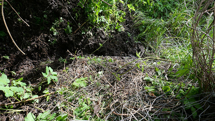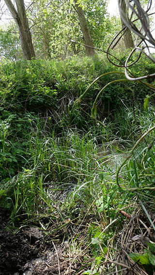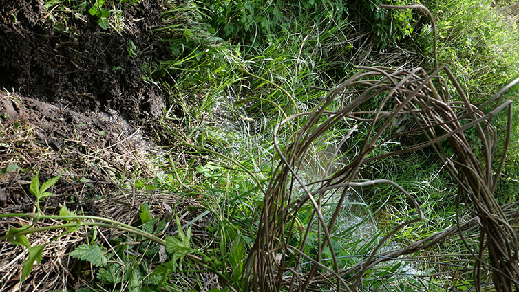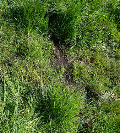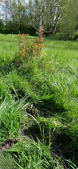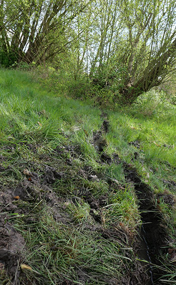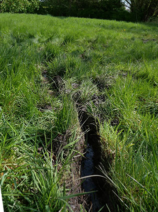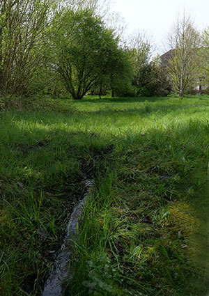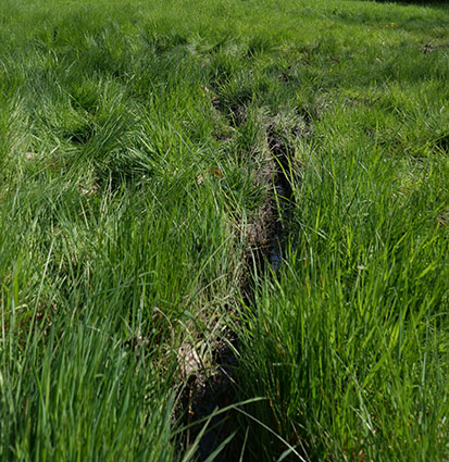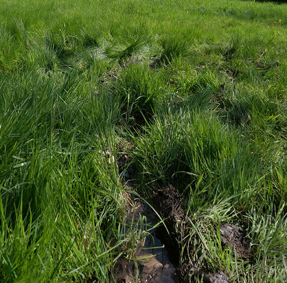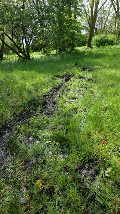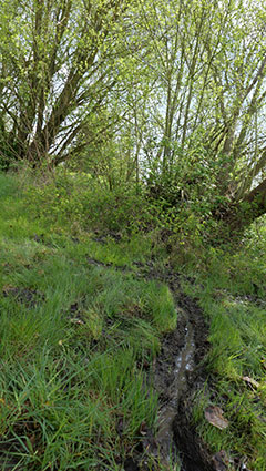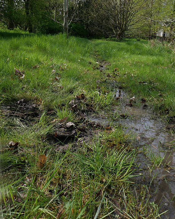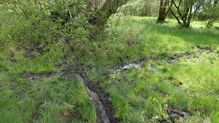 Läuft in die Wege und dann ins Gras, das solcherart sumpfig wird.