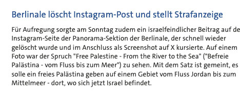 Free Palestine fom the river to the see sei eine Aufforderung zur Beseitigung Israels als Besetzer