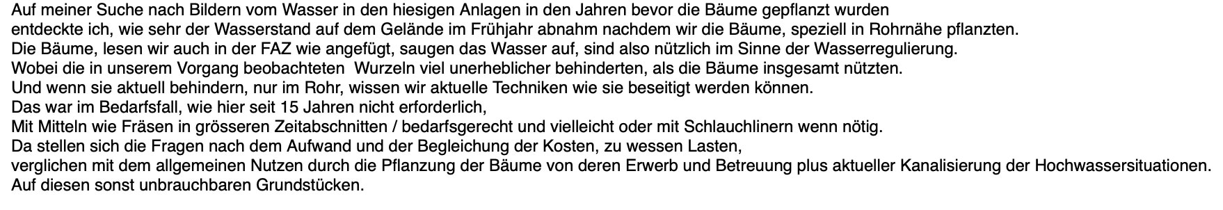 oder Bäume saugen das HohWasser . Besser den Graben wieder aufmachen, wir habens vorgeschglagen auf unserer Seite.