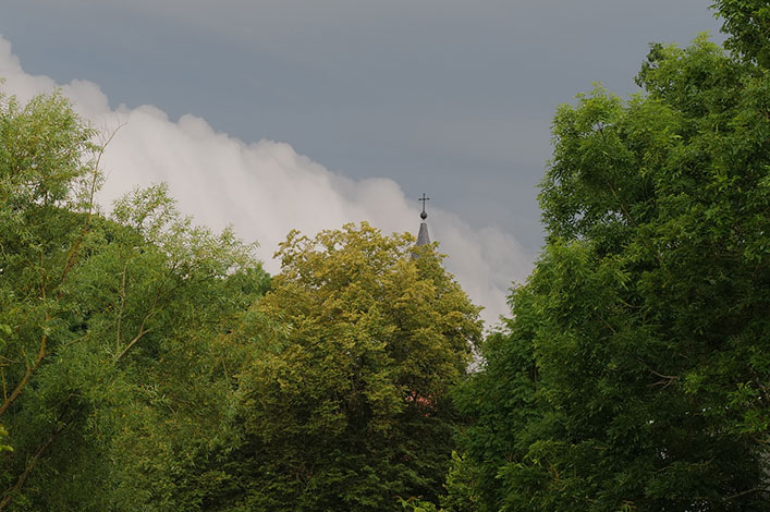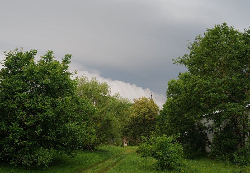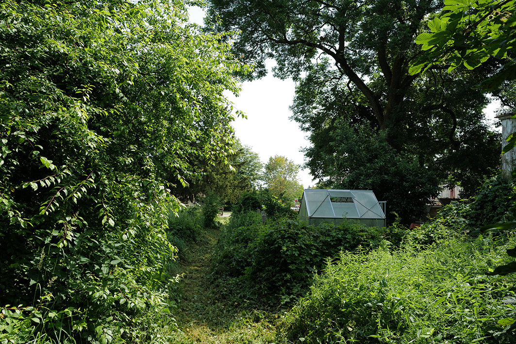 Unser Weg hinaus, früher auf die Felder, heute wo die wohnen jenseits des Rohrs anstelle der Grabens: offen Trotz dem.