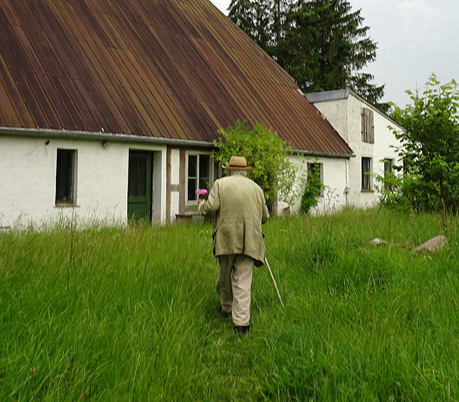 Und musste ganz anders wieder erscheinen, zuletzt in dem Film aus den nahen und verlorenen Demmin als letzter Gesang. Das Rohr an der Stelle des historischen Grabens, mitten hindurch, soll nun Zeichen sein, wie wir damit umgehen. Vergoldet mit technischen Hilfsmitteln, dass die Natur rundum uns dankt, sie wieder erweckt zu haben, wo sonst der Graben verkrautet und sein spärlich gewordenes Wasser -ohne das des Guts selbst weil ohne Eingang dafür- von den Wächtern dafür missachtet ist.