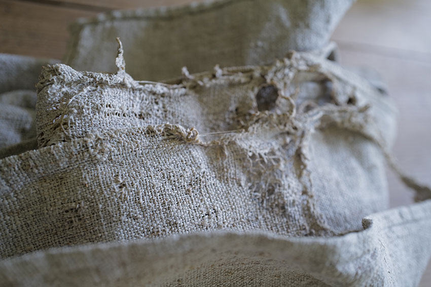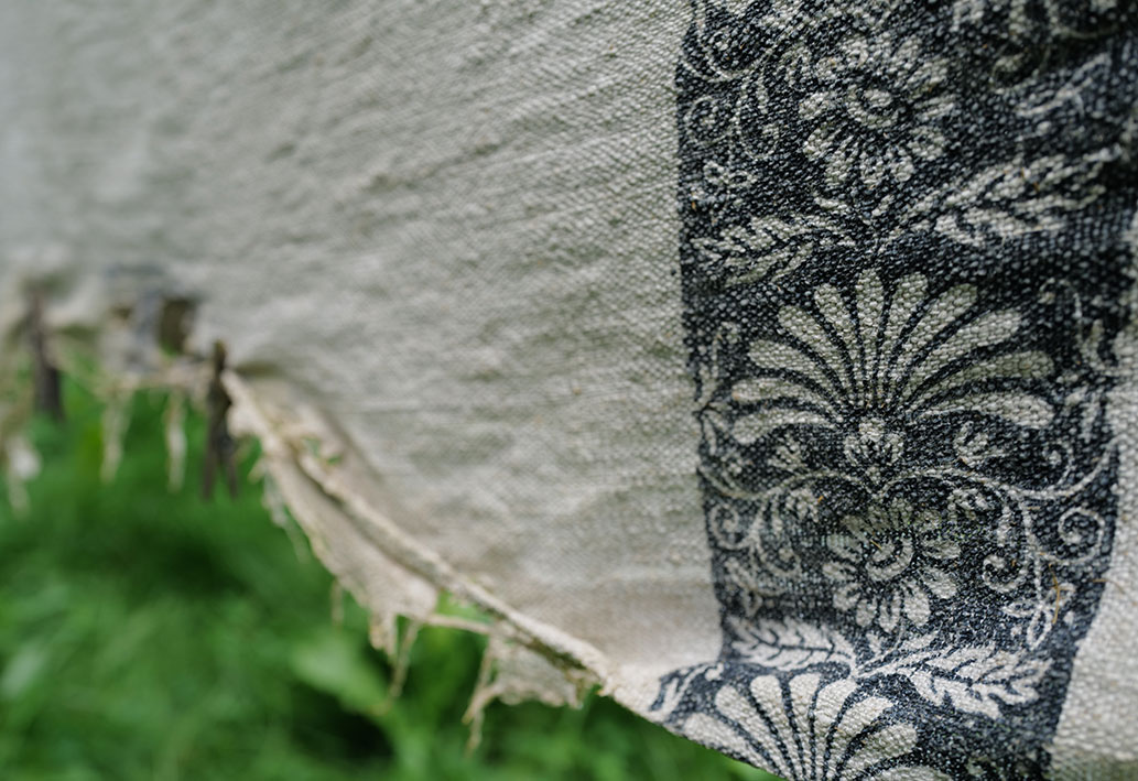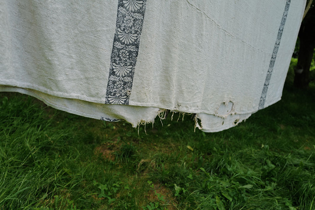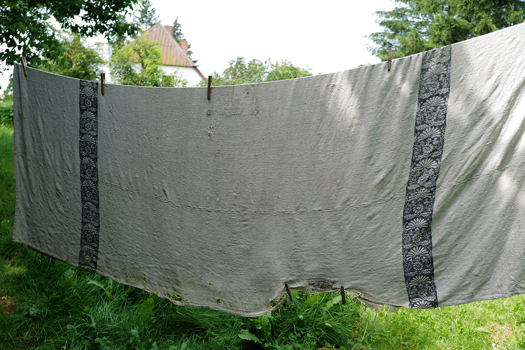 Nässe des Lehmbodens für alles was runterhängt wurde des Leinens Verhängnis an den Rändern zu flicken nun. die Mitte selbst verwaschen. Wir werden sehen.
