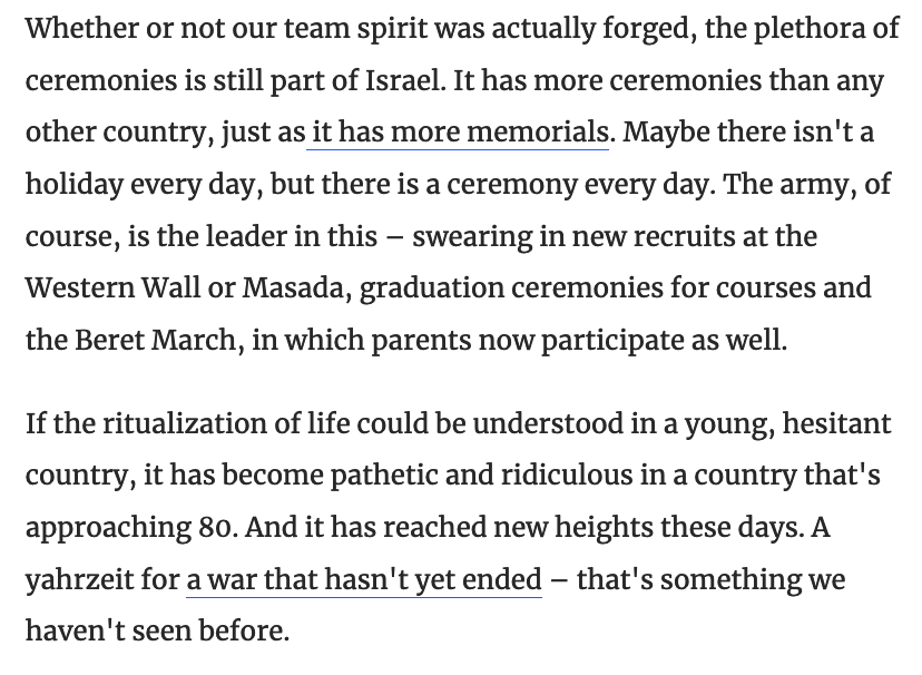 Wenn die Ritualisierung des Lebens in einem jungen, zögerlichen Land verstanden werden könnte, ist es in einem Land, das sich 80 nähert, erbärmlich und lächerlich geworden. Und es hat in diesen Tagen neue Höhen erreicht. Eine Yahrzeit für